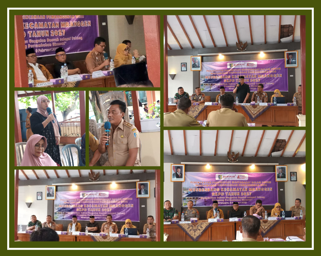 Kec.Mranggen- Kecamatan Mranggen menyelenggarakan kegiatan Musyawarah Perencananaan Pembangunan (Musrenbang) tingkat kecamatan dalam rangka Penyusunan RKPD Tahun Anggaran 2027. Kegiatan ini dilaksanakan pada hari Senin, 9 Februari 2026 bertempat di Pendopo Kecamatan Mranggen.