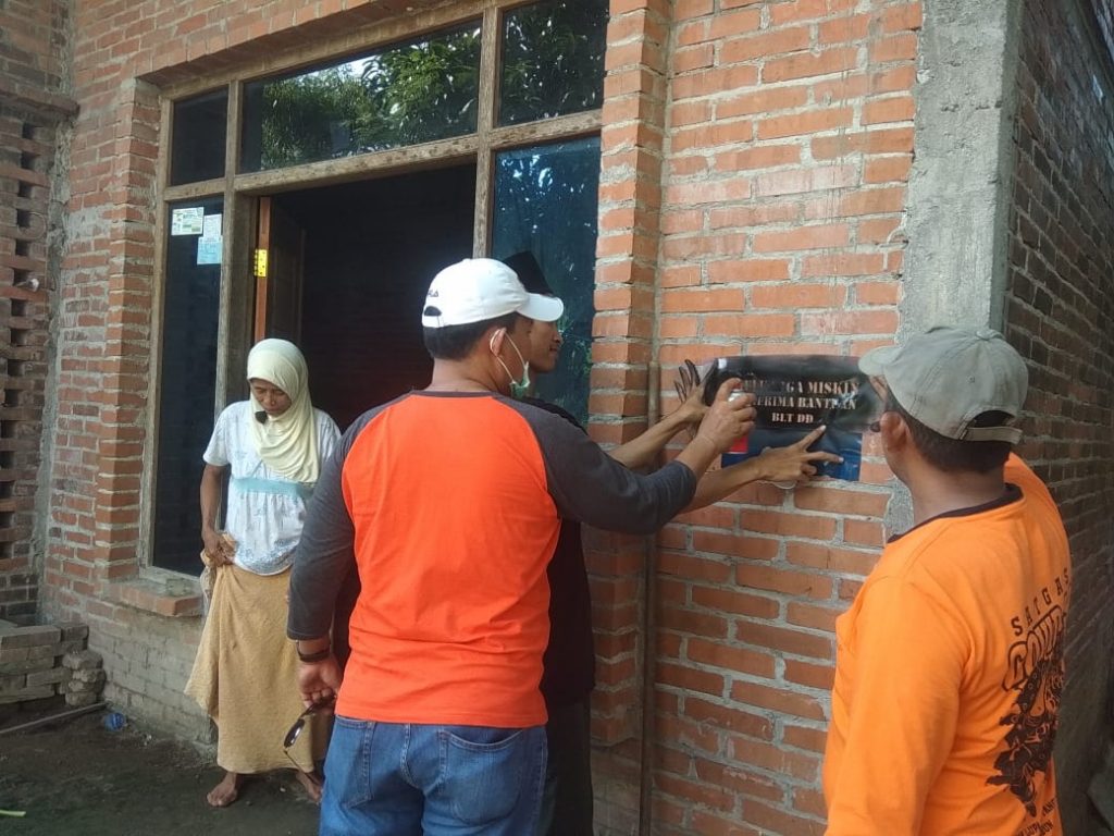 KecMranggen- Pemberian Tanda penerima bantuan Bantuan Langsung Tunai Dana Desa (BLT DD) di Rumah masing-masing penerima oleh Kepala Desa Tamansari Bapak SUDIRO dan Petugas.