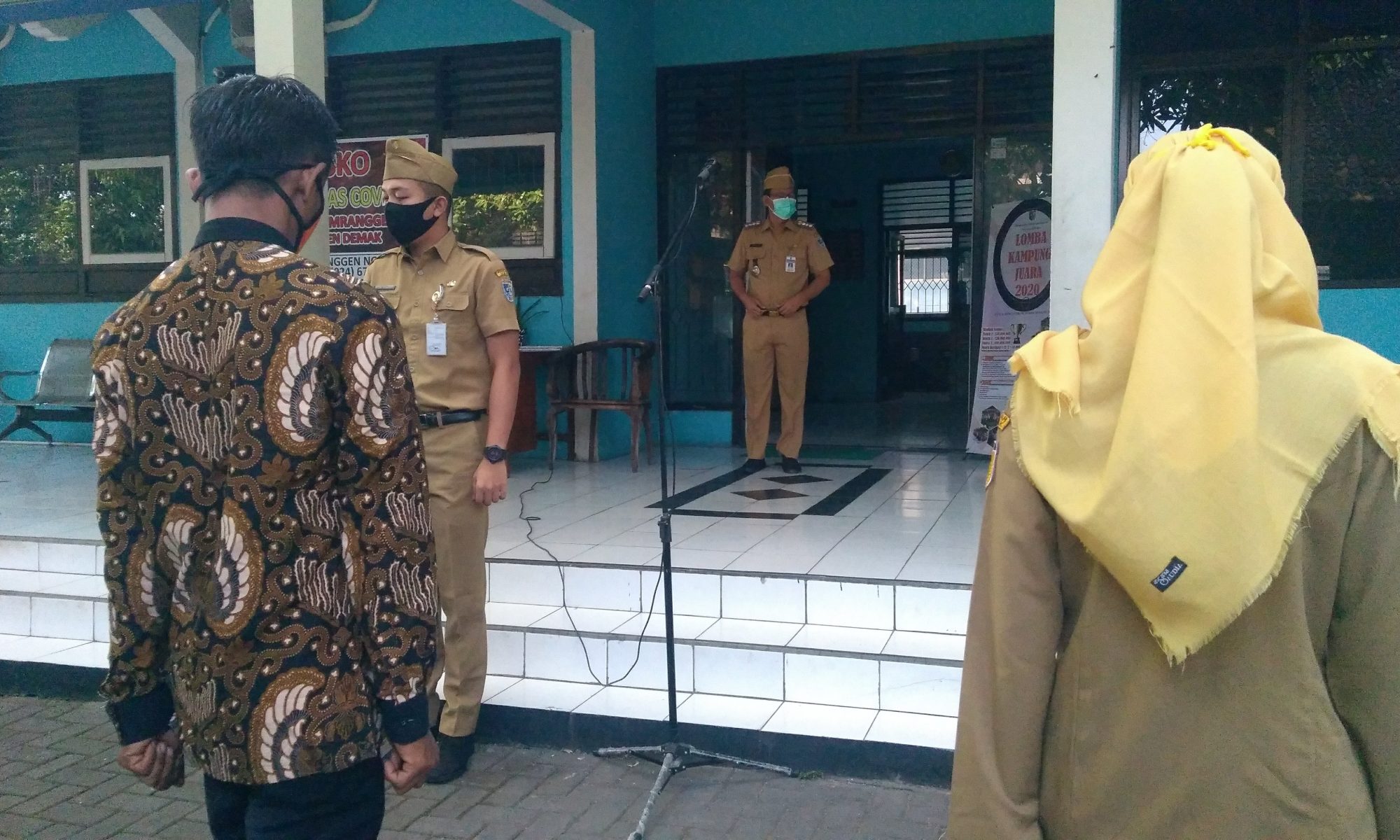 Dalam apel pagi ini Bapak Camat Mranggen menyampaikan ” pagi ini masih dengan tema Covid 19, dihimbau untuk semua karyawan dan karyawati dilingkungan Kecamatan Mranggen untuk mematuhi protokol covid 19, dengan cara memakai masker selalu cuci tangan pakai sabun dan jaga jarak, karena dimasa new normal ini banyak warga yang positif covid 19″.
