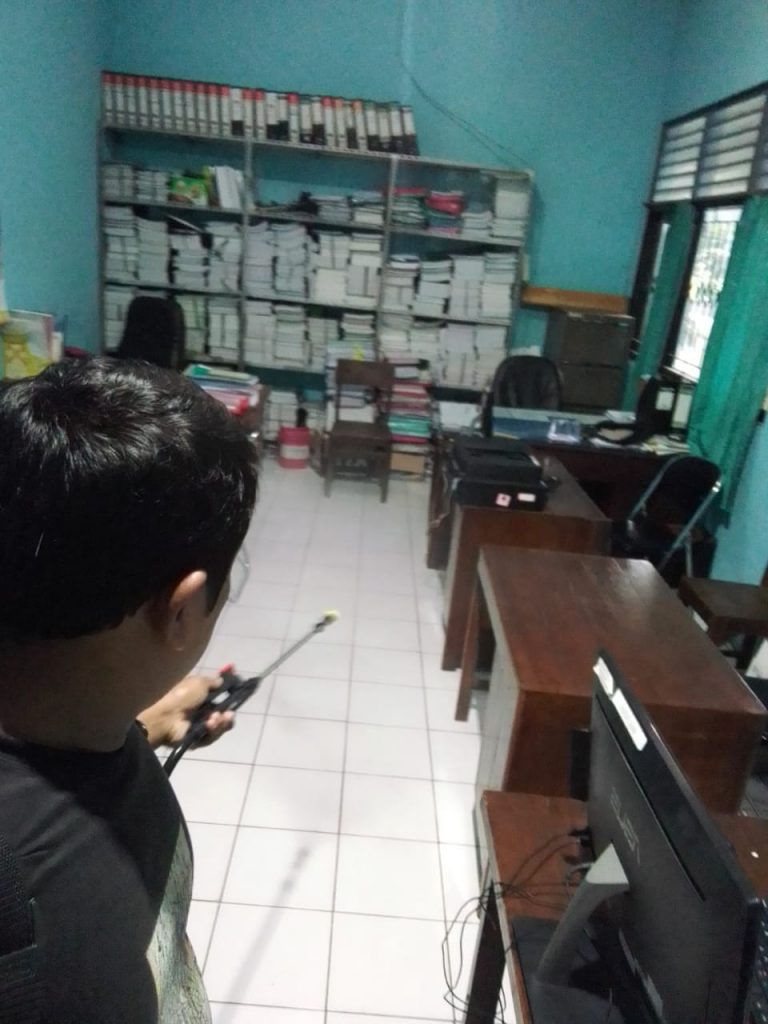 KecMranggen- Atas Perintah Camat Mranggen WIWIN EDI WIDODO, S.SOS, MM memerintahkan kepada staf nya untuk melakukan penyemprotan Disinfektan dilingkungan Kecamatan Mranggen, dikarenakan Banyak warga yang melakukan dan meminta pelayanan masyarakat di Kecamatan Mranggen.(Jum’at, 2 Juli 2021)