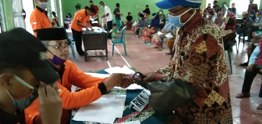 KecMranggen- Monitoring Penyaluran Bantuan Bantuan Langsung Tunai Dana Desa bulan 3 (BLT DD) Desa Kembangarum,Kegiatan monitoring ini dihadiri oleh Kasi Pemberdayaan Masyarakat Kecamatan Mranggen dan Pendamping Desa Kecamatan Mranggen, Acara penyerahan Bantuan Langsung Tunai Dana Desa(BLT DD) bulan 3 ini disecarahkan secara Protokol Covid 19 dan diawasi langsung oleh Babinsa dan Bhabinkantibmas Desa Kembangarum.(Rabu, 15 Juli 2020).