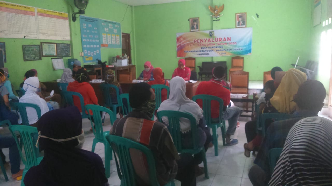 “Kegiatan Penyaluran Bantuan langsung Tunai Dana Desa (BLT DD) bulan 3 Desa Banyumeneng Kecamatan Mranggen ini dilaksanakan dengan protokol Covid-19 mulai masuk sudah diminta untuk Cuci Tangan menggunkan sabun dan Air mengalir, di pintu masuk di tes duhu menggunakan termogan, warga yang hadir menggunkan masker” ujar pendamping Desa Kecamatan Mranggen.
