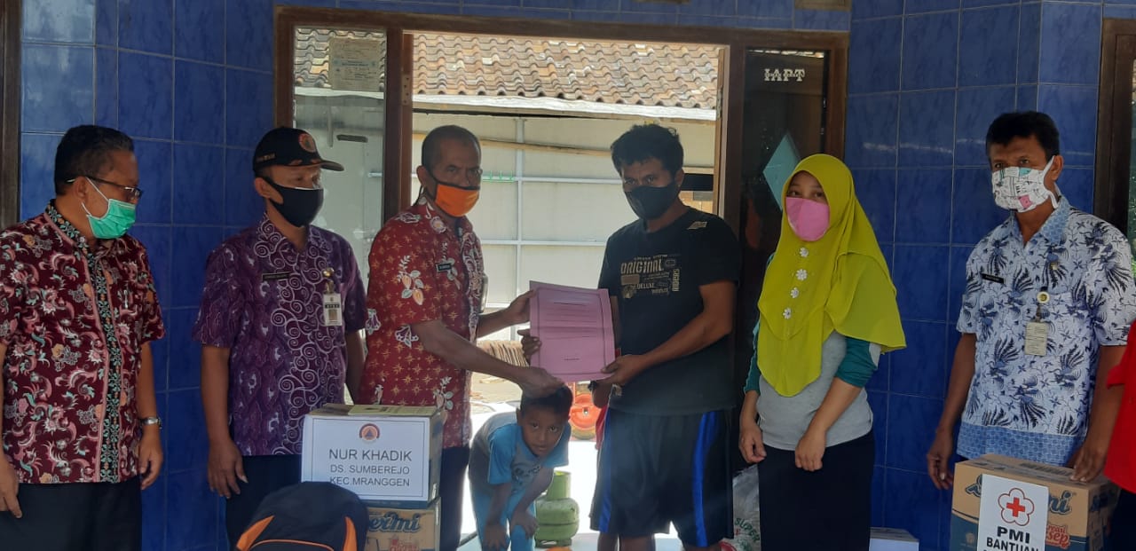 KecMranggen–Â Pemberian bantuan korban kebakaran di Desa sumberjo yang langsung di berikan kepada Korban bencana dilaksanakan oleh Kasi Trantib Kecamatan Mranggen Bapak DUL MUNTOLIB, ST, MT dan didampingi oleh Staf dan Kepala Desa Sumberejo.(Rabu, 29 Juli 2020)