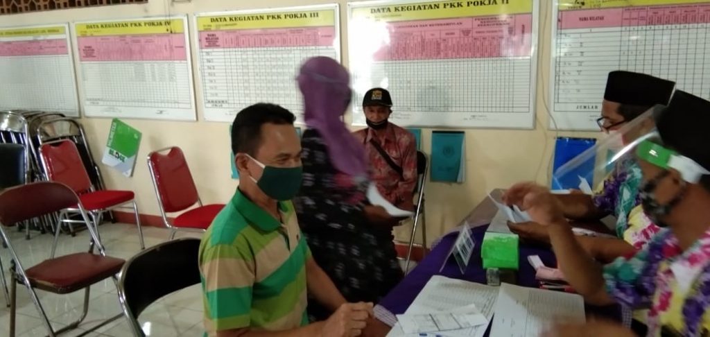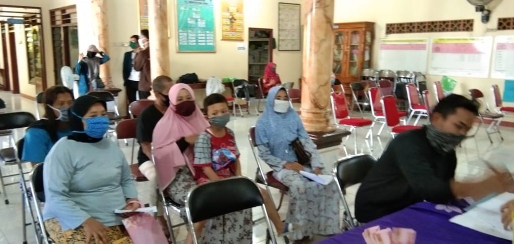 KecMranggen- Monitoring Penyaluran Bantuan Bantuan Langsung Tunai Dana Desa bulan 3 (BLT DD) Desa Kembangarum,Kegiatan monitoring ini dihadiri oleh Kasi Pemberdayaan Masyarakat Kecamatan Mranggen dan Pendamping Desa Kecamatan Mranggen, Acara penyerahan Bantuan Langsung Tunai Dana Desa(BLT DD) bulan 3 ini disecarahkan secara Protokol Covid 19 dan diawasi langsung oleh Babinsa dan Bhabinkantibmas Desa Kembangarum.(Rabu, 15 Juli 2020).